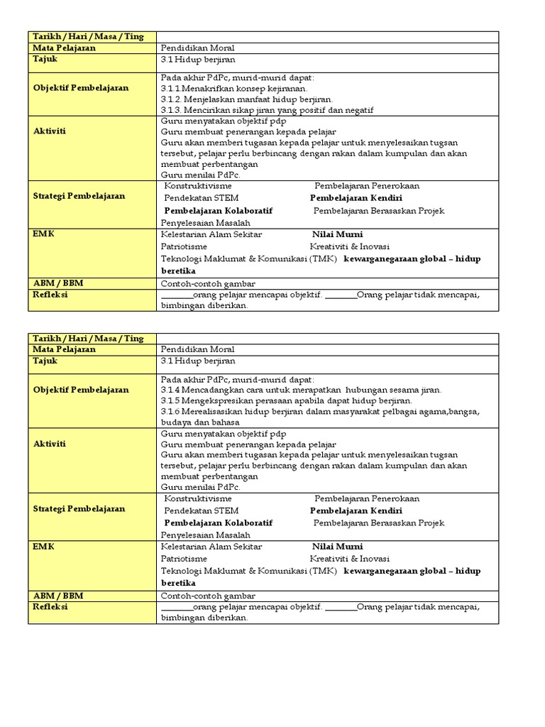 Contoh Rph Pendidikan Moral Tahun 4 2020 Otosection